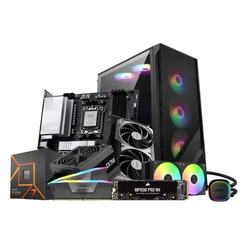 The AMD Ryzen 7 7700 Gaming PC is a genuine powerhouse designed for intense gaming and demanding workloads. It is powered by the AMD Ryzen 7 7700 Gaming Processor for peak performance and cooled by the Gamdias AURA GL240 V2 ARGB Liquid CPU Cooler for best thermal conditions. The AMD Gaming PC is based on the MSI PRO B850M-A WIFI AM5 mATX Motherboard, which offers wide connectivity and extension options. The Corsair MP600 PRO NH 1TB PCIe Gen4 NVMe M.2 SSD With DRAM Cache with Heatsink delivers fast data access and transfer speeds. The MSI GeForce RTX 5060 8G VENTUS 2X OC 8GB GDDR7 Graphics Card enhances the visual experience, providing amazing graphics and smooth gaming. Multitasking is simple with the Corsair VENGEANCE RGB 16GB DDR5 6000MHz CL36 Desktop RAM. All of these PC components are neatly placed in the MSI MAG FORGE 120AAIRFLOW Mid-Tower Gaming Case, which blends aesthetics and simplicity. The Corsair CX750 750W 80 PLUS Bronze ATX Power Supply provides reliable performance.