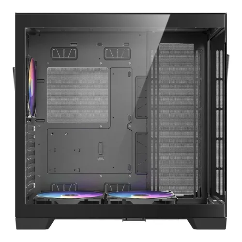 This Antec C8 ARGB Constellation Series Full Tower Gaming Casing supports E-ATX up to 280mm, ATX, M-ATX, and ITX motherboards, allowing for a wide range of high-end configurations. Its distinctive full-view design has 4mm tempered glass with a unique 45-degree beveled edge on the front and side panels, resulting in a seamless 270-degree panoramic display that attractively highlights internal components and ARGB lighting. The Antec C8 ARGB Constellation Series Full View Casing is a dual-chamber design that separates CPU and GPU cooling from the PSU and drives, which improves thermal efficiency and cable management. Cooling support is superb, with a maximum capacity of 10 fans and various mounting options on the top, side, bottom, and rear, including support for 120mm, 140mm, and 160mm fans. The Antec C8 ARGB Constellation Series Gaming Casing has two 160mm reverse ARGB PWM fans at the bottom and one 140mm ARGB PWM fan at the back, which provide ample vertical airflow. The Antec Full Tower Casing can accommodate 360mm radiators on the top, bottom, and sides at the same time, even with thick radiators. This Antec C8 ARGB Constellation Series Gaming Casing is made of durable 0.8mm and 1.0mm steel and features a tool-free design for easy setup and cleaning. It can support GPUs up to 440mm, CPU coolers up to 175mm, and PSUs up to 210mm, including side-interface power supplies. Modular trays may hold up to six drives, and various velcro straps and rubber grommets make cable management easier. The front I/O panel includes USB 3.0 connections, a 10Gbps Type-C port, and a headset combo jack, making the Antec C8 ARGB Constellation Series Casing practical, modern, and builder-friendly for powerful gaming systems.