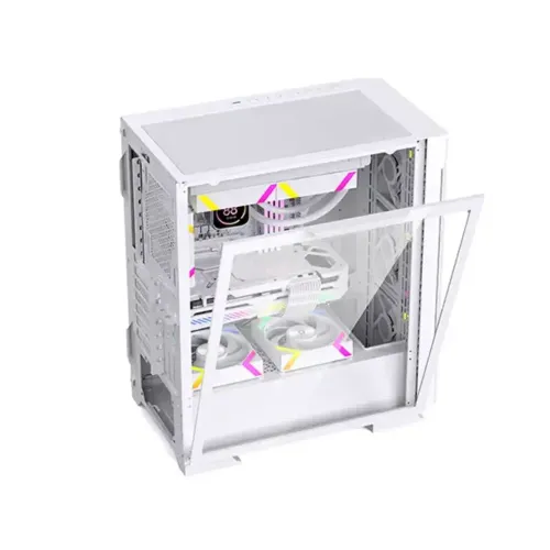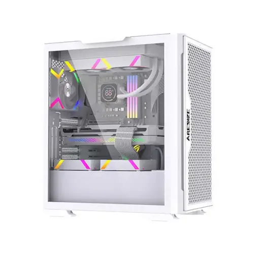 Aresze KT02W White Mid Tower Gaming Casing is built for gamers and PC builders who seek a modern appearance, dependable performance, and flexible compatibility. Aresze KT02W ARGB Gaming Casing supports both E-ATX and ATX motherboards, making it ideal for high-end gaming builds and professional setups. The Aresze KT02W White Casing has a tempered glass left side panel that clearly displays internal components, while the mesh front panel improves airflow and cooling efficiency. The Aresze KT02W White ATX Casing provides straightforward communication with 1xUSB 3.0 connector, 2x USB 2.0 ports, and HD audio on the front panel. Cooling is a significant advantage of the Aresze KT02W Casing, which includes 4x pre-installed 120mm ARGB white fans with an outer 16 LED ring and inner 8 LED design for brilliant lighting. The main fan has an extended cable motherboard connector and a reset connector, ensuring easy control and clean cable management. This mid-tower gaming case can accommodate GPU lengths of up to 340mm and CPU cooler heights of up to 180mm, making it compatible with powerful graphics cards and huge air coolers. It also supports 360mm water cooling systems and vertical graphics card installation for further customization. Fan support supports up to 8x 120mm fans, resulting in an outstanding airflow system for consistent temperatures. Storage options include 2x HDD trays and 2x SSD trays for optimal capacity and speed. With dimensions of 397x240x457mm, the Aresze KT02W Mid Tower Gaming Casing is suitable for most setups. With 7x expansion slots and 3x PCI slots, the Aresze KT02W ARGB Gaming Casing is a beautiful and practical solution for modern gaming systems. Its balanced structure, clear interior layout, and sturdy construction allow for simple daily modifications while retaining consistent airflow, dependable cooling performance, and long-term stability for gamers, streamers, and PC users in demanding modern conditions.