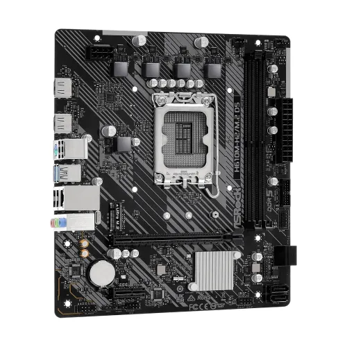 The ASROCK H610M-H2/M.2 DDR5 Motherboard is a powerful and versatile Micro ATX solution designed for Intel’s 14th, 13th, and 12th Gen Core processors (LGA1700), making it an ideal choice for high-performance gaming, productivity, and multimedia setups. This ASROCK H610M-H2/M.2 mATX DDR5 Motherboard is built on the Intel H610 chipset and features a 128Mb AMI UEFI BIOS with GUI support, ensuring smooth system management and stable operation. It supports dual-channel DDR5 memory with 2 DIMM slots, accommodating up to 96GB of high-speed RAM (up to 5600 MHz for 13th Gen and 4800 MHz for 12th Gen CPUs) with Intel XMP 3.0 for optimized performance. Graphics capabilities are powered by Intel Xe Graphics Architecture (Gen 12) and 2 HDMI 2.1 ports supporting 4K resolution at 60Hz, providing crystal-clear visuals for high-definition displays. For storage, the ASROCK H610M-H2/M.2 14th, 13th and 12th Gen mATX DDR5 Motherboard includes 1 Ultra M.2 socket (PCIe Gen3x4, 32 Gb/s) and 4 SATA3 6.0 Gb/s connectors, while expansion options include 1 PCIe 4.0 x16 slot and 1 PCIe 3.0 x1 slot for additional cards. Networking is powered by Realtek Gigabit LAN (10/100/1000 Mb/s), and connectivity is abundant with 4 USB 3.2 Gen1 ports, 6 USB 2.0 ports, internal headers for fan control, front panel audio, and TPM security support. The Realtek ALC897 codec delivers 7.1 channel HD audio for an immersive sound experience. The rear I/O of this ASROCK H610M-H2/M.2 DDR5 Motherboard includes a PS/2 port, dual HDMI outputs, multiple USB ports, an RJ-45 LAN port, and HD audio jacks, ensuring full peripheral compatibility. Users also benefit from ASRock utilities such as A-Tuning, EZ Mode, Full HD UEFI, My Favorites, Auto Driver Installer, and Instant Flash, making firmware updates and system optimization simple. Compact yet feature-rich, the ASROCK H610M-H2/M.2 mATX DDR5 Motherboard combines cutting-edge performance, DDR5 memory support, and multi-generation Intel CPU compatibility for a robust computing experience.