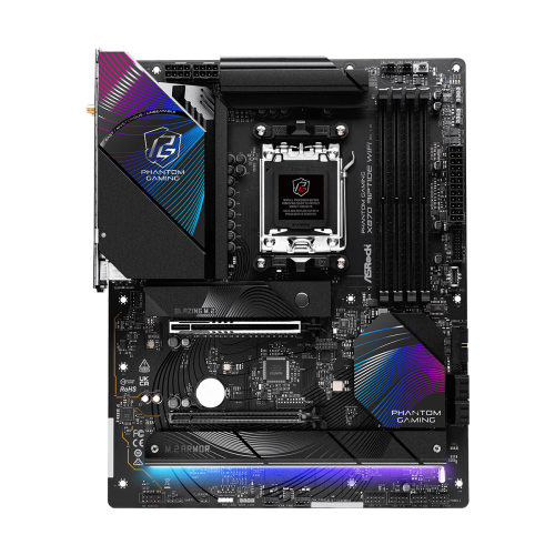 The ASRock X870 RIPTIDE WIFI AM5 ATX Motherboard is a powerhouse built on the advanced AMD X870 chipset, designed to deliver next-generation performance for gamers, creators, and professionals. Supporting AMD Ryzen 9000, 8000, and 7000 Series processors on the AM5 socket, this ASRock motherboard ensures future-ready compatibility with CPUs. Featuring dual-channel DDR5 memory technology with 4 DIMM slots, it supports up to 256GB DDR5 ECC/non-ECC un-buffered memory with speeds beyond 8000+(OC), along with XMP and EXPO profiles for seamless overclocking. Its ATX form factor (12.0 x 9.6 inches) with an 8-layer PCB enhances durability and stability, while the 14+2+1 power phase design with 80A Dr.MOS and enlarged heatsink armor ensures rock-solid power delivery. For productivity and gaming, it integrates PCIe Gen5 graphics and M.2 support, USB4 Type-C ports (40Gb/s), and Killer E3100G 2.5G LAN alongside Wi-Fi 7 (802.11be) and Bluetooth 5.4 for ultrafast connectivity. Storage options include a Blazing Gen5 M.2 slot, dual Gen4 Hyper M.2 sockets, and 4 SATA3 connectors, supporting RAID 0/1/10 for NVMe drives. The ASRock X870 RIPTIDE WIFI also offers ASRock Lightning Gaming Ports, BIOS Flashback, and Auto Driver Installer for effortless updates. On the multimedia side, it delivers 7.1 channel HD audio powered by Realtek ALC4082, Nahimic Audio, and support for 600 Ohm headsets, ensuring immersive sound. Graphics output includes HDMI 2.1 (4K 120Hz) and USB4 (8K 30Hz) with HDR and HDCP 2.3 support. With premium features like 20K long-lasting black capacitors, flexible integrated I/O shield, multiple ARGB and RGB headers, and extensive fan/pump connectors with smart speed control, the ASRock X870 RIPTIDE WIFI AMD is engineered for high-performance gaming, creative workloads, and future-proof PC builds.