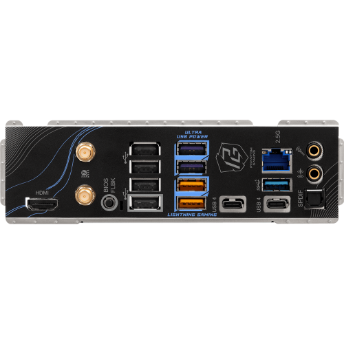 | Special Features | Superb Productivity - PCIe Gen5 (Graphics, M.2) - Dual Channel DDR5 - USB4 Type-C Ports (40 Gb/s) Rock-Solid Durability - 14+2+1 Power Phase, 80A Dr.MOS for VCore+SOC with Enlarged Heatsink Armor - Flexible Integrated I/O Shield - 20K Long-lasting Black Caps (high quality and conductive polymer capacitors) Ultrafast Gaming - Killer 2.5G LAN, 802.11be Wi-Fi 7 Module - ASRock Lightning Gaming Ports EZ Update - BIOS Flashback Button - ASRock Auto Driver Installer | |