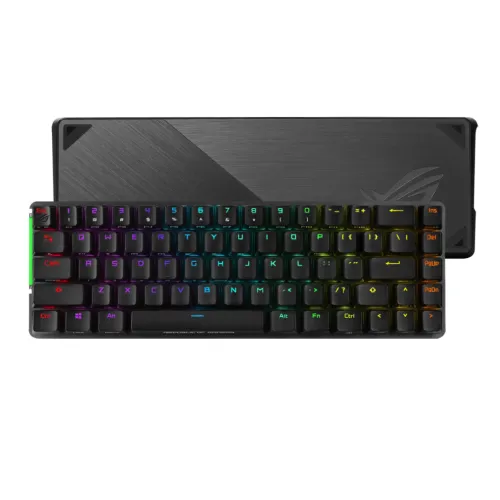 The ASUS M601 ROG Falchion NX Red Switch Wireless Mechanical Gaming Keyboard is a compact 65% wireless mechanical keyboard designed for advanced gaming performance. With 68 keys, ROG NX Red switches, and per-key RGB lighting, it delivers precision and customization. This gaming keyboard offers dual-mode connectivity through USB 2.0 and 2.4 GHz RF, ensuring stable input with a 1000 Hz report rate. The rechargeable keyboard provides up to 450 hours of battery life when RGB lighting is off, making it a reliable option for extended sessions. The ASUS M601 ROG Falchion NX Keyboard also features durable PBT doubleshot keycaps, an interactive touch panel, and an innovative cover case for portability. Compact yet powerful, this wireless keyboard balances performance, durability, and portability for gamers seeking efficiency.
