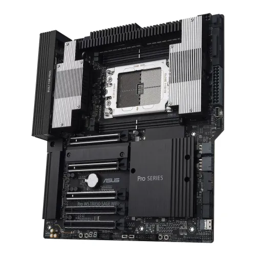 Featuring the AMD sTR5 socket, the ASUS Pro WS TRX50‑SAGE WIFI supports Ryzen Threadripper PRO and Threadripper CPUs, offering massive multi‑core performance for rendering, simulation, and AI workloads. With 4 DDR5 DIMM slots and quad‑channel memory architecture, this ASUS Motherboard for Threadripper CPU ensures high bandwidth and stability for professional applications.
