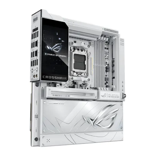 Exclusive ASUS AI technologies make the ROG CROSSHAIR X870E GLACIAL Motherboard intelligent and adaptive. Features such as AI Cooling II, AI Overclocking, and AI Cache Boost automatically optimize system performance, ensuring smooth gameplay and efficient multitasking. Combined with Fan Xpert 4, GameFirst networking, and Aura Sync RGB lighting, the board adapts seamlessly to gaming and productivity needs, making this Asus ROG Motherboard a perfect choice for both beginners and experienced PC builders.