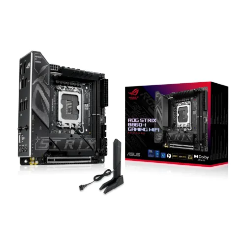 The Asus ROG STRIX B860‑I GAMING WIFI LGA 1851 Mini ITX Motherboard is a compact yet powerful solution for next‑generation Intel builds. Designed with the Intel B860 chipset, this Asus ROG STRIX Motherboard delivers advanced performance, DDR5 memory support, PCIe 5.0 expansion, and seamless wireless connectivity with Wi‑Fi 7. Perfect for small form factor PCs, this Asus ITX Motherboard combines cutting‑edge features with premium design.