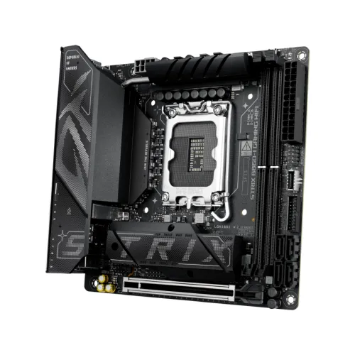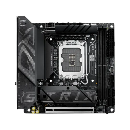 The Asus ROG STRIX B860‑I Motherboard features robust cooling solutions including large heatsinks, high‑conductivity thermal pads, and an L‑shaped heatpipe for efficient thermal management. Its Mini ITX form factor makes it ideal for compact builds, while DIY‑friendly features such as PCIe Slot Q‑Release Slim, Q‑LED indicators, and a pre‑mounted I/O shield simplify installation.
