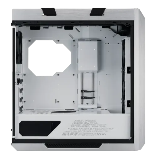 The ASUS ROG Strix Helios GX601 White Edition E-ATX Mid Tower Gaming Case can hold GPUs up to 450 mm, so it's ready for the biggest graphics cards on the market today. The three tempered glass panels, metal frame, and smooth Aura Sync lighting make it easy to see from all angles. The ASUS ROG Strix Helios GX601 White Edition E-ATX Casing comes with a cover that can house a GPU, a PSU, and a translucent rear cable cover. These assist in keeping wires neat. It lets users install GPUs in several ways. With the provided bracket, they can mount three cards horizontally or two vertically. This gives the ASUS ROG Strix Helios GX601 White Gaming Casing a powerful visual impact for show builds. There is a lot of room for cooling, including a 420 mm radiator in the front, different radiator sizes on the top and back, and 140 mm fans already placed on the front and back. The ASUS ROG Strix Helios GX601 White Edition Casing can hold EATX, ATX, Micro ATX, and Mini ITX boards, so builders can choose the arrangement that works best for them. The advanced I/O panel has USB 3.1 Gen2 Type C, four USB 3.1 Gen1 ports, buttons for RGB control, and buttons for fan control that let you make quick changes. The ASUS ROG Strix Helios GX601 White Casing has four 2.5-inch bays, two combo bays, and eight expansion slots, plus two more vertical slots. It can handle high-performance setups with ease because it has a maximum CPU cooler height of 190 mm, a PSU support height of 220 mm, and dust filters on the top, front, and bottom.