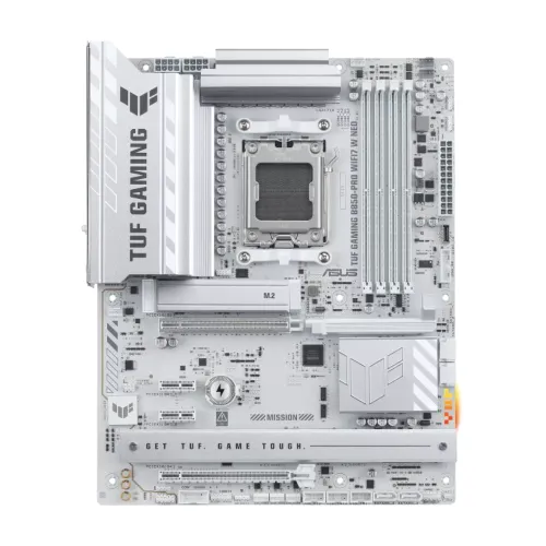 The Asus TUF GAMING B850-PRO WIFI7 W NEO Motherboard is a feature-rich ATX board engineered for gamers, creators, and professionals who demand stability, speed, and durability in their builds. Powered by the AMD B850 chipset and supporting the latest AMD AM5 processors, this Asus TUF GAMING Motherboard delivers next-generation performance with DDR5 memory support up to 256GB and speeds reaching 9000+ MT/s (OC). Expansion is future-ready with PCIe 5.0 x16 slots for cutting-edge GPUs, three M.2 slots with PCIe 5.0 and 4.0 compatibility for ultra-fast storage, and four SATA 6Gb/s ports with RAID 0/1/5/10 support. Connectivity is equally advanced, featuring WiFi 7 with Bluetooth 5.4, Realtek 2.5Gb Ethernet with TUF LANGuard, and a wide range of USB options including USB4, USB 10Gbps, USB 5Gbps, and USB 2.0 ports across both rear and front I/O. Audio is powered by the Realtek ALC1220P codec, delivering immersive 7.1 surround sound with premium capacitors and shielding for crystal-clear output. Built with military-grade components, stainless-steel back I/O, and enhanced cooling solutions such as VRM and M.2 heatsinks, this Asus 850 Motherboard ensures long-lasting endurance under heavy workloads. DIY-friendly features like a pre-mounted I/O shield, M.2 Q-Latch, PCIe Slot Q-Release, BIOS FlashBack, and Clear CMOS button simplify installation and upgrades, while Aura Sync RGB lighting adds customizable style. With its rugged design, advanced performance, and future-ready connectivity, the Asus WiFi Motherboard stands out as a reliable choice for high-performance gaming rigs and professional workstations. For builders seeking a blend of durability and aesthetics, the ASUS White Motherboard option within the TUF lineup offers a sleek alternative, combining the same military-grade reliability with a clean, modern look. Altogether, the Asus TUF GAMING B850-PRO WIFI7 W NEO Motherboard is the ultimate solution for those who want a powerful, versatile, and future-proof platform for their next PC build.
