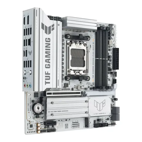 Featuring the AMD AM5 socket, the ASUS TUF GAMING B850M‑PLUS WIFI7 W supports the latest Ryzen CPUs, ensuring future‑ready performance. With DDR5 memory support across dual‑channel architecture, this ASUS DDR5 Gaming Motherboard provides high bandwidth and stability for multitasking, gaming, and content creation. Optimized power delivery ensures consistent performance even under heavy loads.