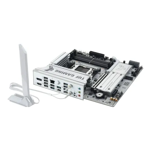 The ASUS TUF GAMING B850M‑PLUS WIFI7 W Motherboard delivers advanced connectivity with WiFi 7 and Bluetooth 5.4 for ultra‑fast wireless networking. Wired connections are powered by Realtek 2.5Gb Ethernet, ensuring stable and low‑latency performance. Rear I/O includes USB 20Gbps Type‑C, multiple USB 10Gbps Type‑A ports, HDMI, DisplayPort, and audio jacks, making it ideal for modern gaming setups.