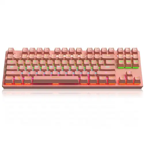 The BAJEAL K300 87 Keys Hot Swappable Mechanical Gaming Keyboard is equipped with with Hot swappable Mechanical Blue Switches and RGB light effects and two-color injection PBT keycap.