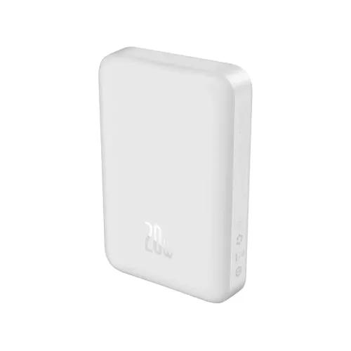 This Baseus Wireless Power Bank supports 7.5W magnetic wireless charging for iPhone 15/14/13/12 series and 20W PD fast wired charging via USB-C. It can charge two devices simultaneously one wirelessly and one via cable and supports pass-through charging, so you can recharge your phone and the power bank at the same time. The USB-C port also enables fast recharging of the power bank itself in under 2 hours with a 20W PD charger.