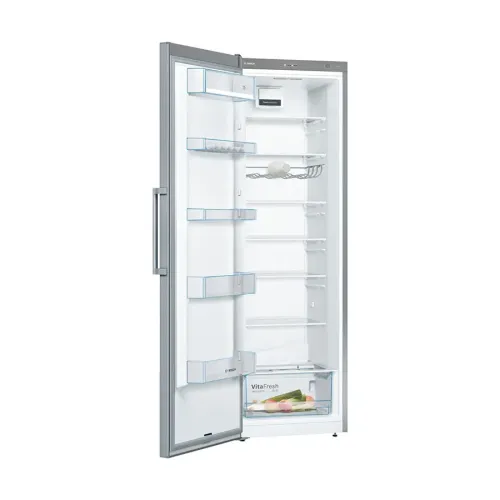 The BOSCH KSV36VL3PG Series 4 is a free-standing upright refrigerator designed for efficient cooling and flexible storage with a total net capacity of approximately 348 liters.