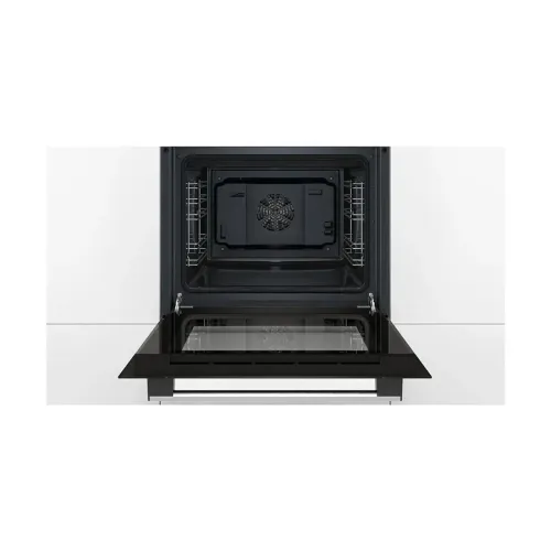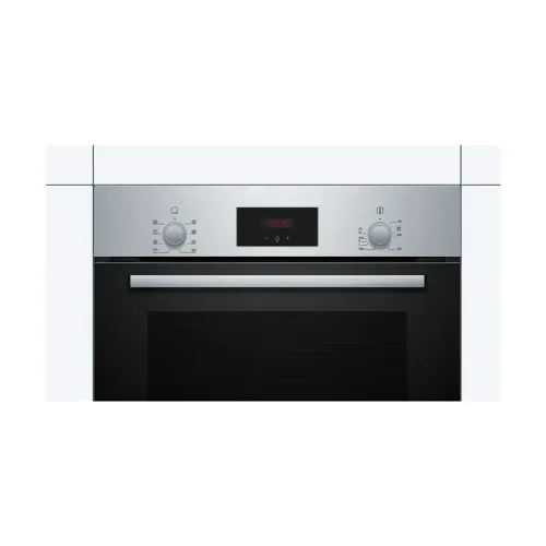 The BOSCH Series 2 HBF113BR0Q is a high‑performance built‑in microwave oven designed to elevate modern kitchens with efficiency, versatility, and advanced cooking technology. Its spacious 66‑liter capacity, this appliance easily accommodates large dishes. Therefore it is ideal for families or anyone who enjoys multitasking during meal preparation. A key highlight of the BOSCH Series 2 HBF113BR0Q is its hydrolytic integrated cleaning system, which utilizes steam to loosen stubborn food residues. This ensures hassle‑free maintenance while promoting an eco‑friendly cleaning process without harsh chemicals. The oven features a clear, easy‑to‑use Red LED display paired with smooth knob controls, allowing users to navigate settings effortlessly. It includes 5 heating and combination modes. They are Hotair Gentle, Hot Air, Conventional Heat, Hot Air Grilling, and Full‑Width Variable Grill. Supported by 3D Hotair technology, the oven ensures consistent heat circulation across up to three levels, allowing multiple dishes to cook evenly and simultaneously. The Fast Preheat function further enhances convenience by significantly reducing preparation time. With a wide temperature range of 50-275°C, the BOSCH Series 2 HBF113BR0Q is suitable for baking, roasting, grilling, and slow cooking. The appliance comes equipped with essential cooking accessories, including an enamel baking tray, a combination grid, and a universal pan, ensuring users have the right tools for various cooking needs. Designed for seamless integration, the oven’s dimensions 595 × 594 × 548 mm fit standard cabinetry, while flexible installation measurements ensure compatibility with different kitchen setups. Despite its generous capacity, the oven maintains a practical net weight of 32.5 kg, ensuring secure and easy installation. Overall, the BOSCH Series 2 HBF113BR0Q combines modern design, user-friendly features, and reliable performance so its a valuable addition to any home. Whether you’re upgrading your kitchen or replacing older appliances, the BOSCH Series 2 HBF113BR0Q offers exceptional efficiency, advanced heating options, and long‑lasting reliability for cooking.