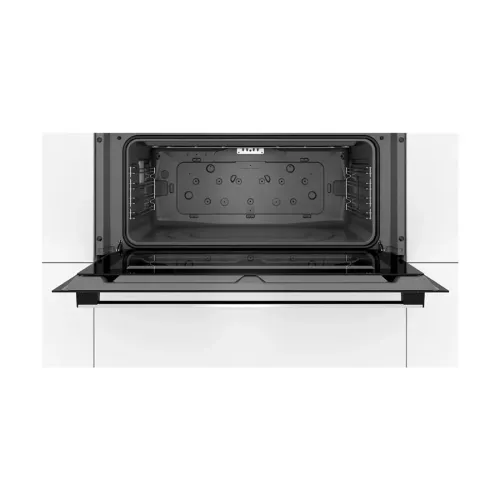 The Bosch Series 2 VBC011BR0M Electric Oven is a built-in appliance that offers reliable performance, ample capacity, and user-friendly features for modern households. This oven's 85-liter capacity makes it excellent for large families, regular entertainers, and those who need extra cooking space for roasts, baking pans, or multi-course meals. The sleek stainless-steel finish gives a luxury touch to match modern kitchen designs. The BOSCH Series 2 VBC011BR0M's hydrolytic integrated cleaning system simplifies maintenance by loosening residues with steam. This eco-friendly cleaning method reduces the need for harsh chemicals and scrubbing, making it easy to keep a clean oven. With detachable door glass, the appliance provides increased accessibility and hygiene. The oven has 3 primary cooking modes: Full-Width Grill, Conventional Heat, and Bottom Heat. These modes are suitable for a wide range of cooking chores, including grilling meats and browning casseroles, as well as baking cakes and bread evenly. One important feature is the Top/Bottom Heat technology, which ensures even heat distribution across a single level. This avoids concerns like hot spots and uneven cooking, resulting in consistent, precisely cooked products every time. The temperature range of 50-250°C enables users to experiment with slow and high-heat recipes, increasing overall adaptability. The oven has a user-friendly knob-control interface, making it suitable for those who like tactile operation. The pull-out accessory system promotes convenience by making it easier to insert and remove trays. The included accessories, a combined grid and universal pan, meet your everyday cooking needs right out of the box. The BOSCH Series 2 VBC011BR0M, measuring 475 × 896 × 577 mm, can be easily integrated into various built-in cabinets. Its strong 41.9 kg structure, 115 cm power cable, and adjustable installation height and width make it both strong and flexible. Overall, the BOSCH Series 2 VBC011BR0M Electric Oven is a reliable addition to any modern kitchen, thanks to its efficient heating performance, sturdy build quality, and convenient cleaning features.