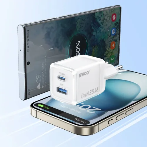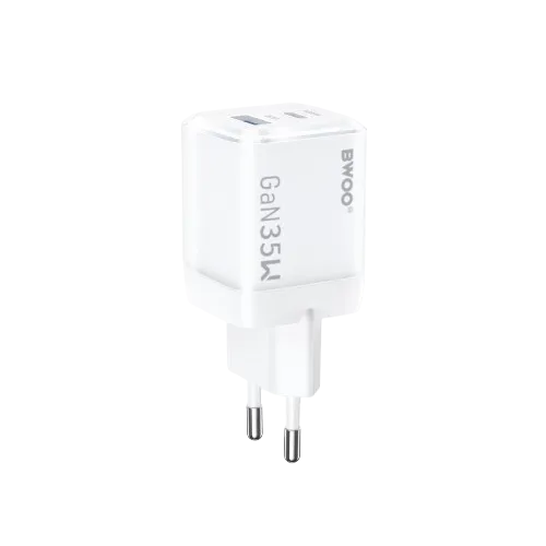 The BWOO BO-CDA222 GaN Charger delivers a powerful and versatile charging experience with its dual-port configuration featuring both USB-C and USB-A outputs. Leveraging advanced GaN (Gallium Nitride) chip technology, this 35W fast charger ensures superior energy efficiency and heat management, allowing for rapid charging without overheating. With PD 35W and QC 30W fast charging capabilities, it intelligently distributes power to charge two devices simultaneously perfect for powering up your smartphone, tablet, earbuds, or even a lightweight laptop. The BWOO charger’s sleek translucent design adds a stylish touch to its compact form, making it ideal for travel or everyday use. Safety is paramount, and the BWOO BO-CDA222 Adapter includes eight layers of protection, such as over-voltage, over-current, and short-circuit safeguards, all housed within a PC flame-retardant shell with double-layer insulation for cool and secure operation. Whether you're a frequent traveler, a tech enthusiast, or someone who simply needs reliable power on the go, the BWOO BO-CDA222 Charger stands out as a smart, portable, and future-ready charging solution.