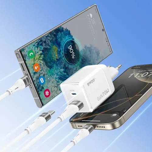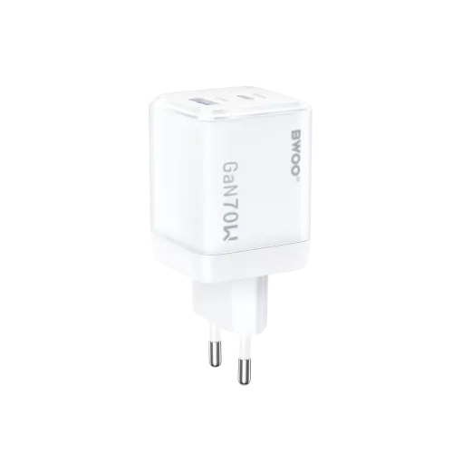 The BWOO BO-CDA224 charger delivers an impressive 70W total output, allowing users to charge two devices simultaneously at full speed. Its dual USB-C ports intelligently distribute power PD 45W + 15W to optimize charging efficiency, whether you're powering a laptop, tablet, or smartphone. The charger’s translucent design adds a sleek, modern aesthetic, while its compact and portable build makes it ideal for travel and daily use. Safety is a top priority with this device. The PC flame-retardant casing and double-layer heat insulation ensure low-temperature operation, while multi-layered protection guards against over-voltage, short-circuiting, and overheating. For overnight charging, the BWOO BO-CDA224 features smart trickle charging, which automatically switches modes to protect battery health. This BWOO charger is also universally compatible, supporting a wide range of USB-C-enabled devices, including MacBooks, iPads, Android phones, and more. Whether you're a tech-savvy professional or a frequent traveler, the BWOO BO-CDA224 Adapter offers a reliable, high-performance solution for all your charging needs