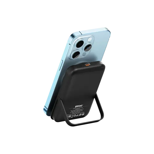 The BWOO BO-P33 10000mAh Magnetic Wireless Power Bank is a premium and compatible charging solution developed to match the power demands of current smartphone users. This BWOO BO-P33 Power Bank, which has a high-capacity 10000mAh lithium battery, delivers long-lasting performance, keeping your gadgets charged throughout the day. It enables 20W PD fast charging via its USB Type-C output, with efficient charging speeds at three voltage levels—5V-3A, 9V-2.22A, and 12V-1.67A—to assure compatibility with a wide range of devices. The Type-C input (5V-2.4A/9V-2A) enables quick self-recharging, reducing downtime between applications. What distinguishes the BWOO BO-P33 Magnetic Wireless Power Bank is its 15W wireless magnetic charging capability, which provides steady, cable-free power transmission and is ideal for MagSafe-compatible phones and accessories. It has a built-in folding stand that allows you to comfortably watch videos or conduct video chats while charging. The BWOO BO-P33 10000mAh Wireless Power Bank is made of fireproof ABS, PC, and aluminum alloy and has a sleek, modern design. The tiny dimensions of 107×71×20mm make it ideal for travel or daily usage. The integrated USB Type-C interface and easy-access control button enhance its functionality and use. Whether you're working, traveling, or gaming, the BWOO BO-P33 Magnetic Wireless Power Bank keeps your gadgets charged with optimal efficiency. This power bank, which has both PD20W wired fast charging and 15W wireless charging, provides remarkable adaptability and performance, making it one of the finest magnetic wireless power banks in Bangladesh for customers looking for quick, safe, and dependable power on the move.
