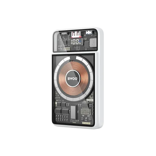 The BWOO BO-P49 10000mAh Magnetic Wireless Power Bank is a stylish, high-powered charging device designed to provide powerful and efficient performance in today's fast-paced world. This BWOO BO-P49 Power Bank has a powerful 10,000mAh lithium battery that provides long-lasting backup power for smartphones, tablets, and other electronic devices. With dual charging capabilities, it supports both MagSafe magnetic wireless charging (up to 15W) and PD 20W cable fast charging, allowing users to charge several devices at once. The BWOO BO-P49 Wireless Power Bank features the latest PD and QC 3.0 fast charging technologies, enabling faster power delivery and improved charging efficiency. With a USB Type-C interface that supports 5V-3A, 9V-2.22A, and 12V-1.67A output, it not only charges your devices swiftly but also recharges itself with up to 18W of input. The BWOO 10000mAh BO-P49 Power Bank is made of high-fireproof ABS, tempered glass, PC, and aluminum alloy, combining endurance and modern aesthetics. The diminutive size (107×71×20mm) makes it lightweight and portable, ideal for vacation or daily usage. The MagSafe magnetic architecture provides strong magnetic alignment, allowing your phone to snap firmly into position for effortless wireless charging. A large transmitter coil improves power transfer, resulting in quicker and more consistent charging performance. Furthermore, the BWOO BO-P49 10000mAh Magnetic Wireless Power Bank incorporates a variety of safety features, including overcharge, overcurrent, and short-circuit protection, to ensure that all of your gadgets charge safely.