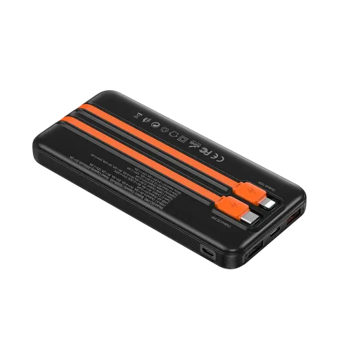 The BWOO BO-P60 10000mAh Power Bank is a durable portable charger that can recharge your gadgets at any time and from any location. The BWOO BO-P60 Power Bank has a large 10000mAh battery capacity and provides efficient and dependable power for smartphones, tablets, and other digital devices. It offers many input choices, including Micro Input (5V⎓2A, 9V⎓2A) and Type-C Input (5V⎓3A, 9V⎓2A, 12V⎓1.5A), providing speedy recharging for the power bank. The BWOO 10000mAh BO-P60 Power Bank has fast-charging outputs via USB (up to 12V⎓1.5A), Type-C (20W), Type-C Cable (22.5W), and Lightning Cable (5V⎓2.4A), allowing customers to charge many devices effectively. It has built-in Type-C and Lightning cables, reducing the need to carry additional connections. The BWOO BO-P60 10000mAh Power Bank features smart protection technology that prevents overcharging, overheating, and short circuits, ensuring optimal safety. The tiny form (149×69×18.5mm) allows for easy storage in a purse or pocket. It is made of robust ABS material and has a sleek black finish. The BWOO BO-P60 Power Bank, which features USB Type-A, Type-C, and Lightning ports as well as an easy-to-use control button, combines portability, power, and protection, making it an outstanding choice for rapid and safe charging on the move.