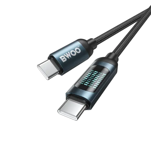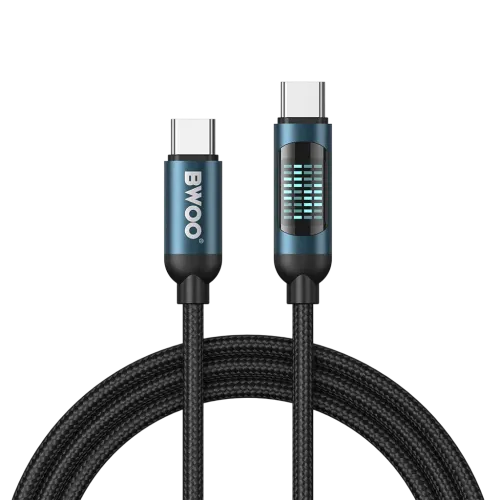 The BWOO BO-X304C-C 60W 1M Type C Cable is a premium charging and data transfer solution designed for modern USB-C devices. This BWOO BO-X304C-C Type C Cable features a Type-C to Type-C interface and a 1-meter length, offering fast, reliable, and tangle-free charging. Built with aluminum alloy, PVC, and a braided nylon exterior, the cable protects the pure copper internal wire cores, ensuring durability and long-lasting performance. With PD 60W fast charging, the BWOO BO-X304C-C Cable delivers rapid power to a wide range of devices, including iPhone 15 series, Android smartphones, laptops, tablets, and earphones, while supporting 480Mbps data transfer for smooth syncing of files. One of the highlights of the BWOO BO-X304C-C 60W 1M Type C Cable is its real-time LED charging status display, allowing users to monitor the exact power flow to their devices. The built-in safety chip safeguards against overcurrent, overvoltage, and overheating, making charging both safe and efficient. Developed by BWOO, a leading data cable supplier in China, this cable is certified with CE, FCC, and RoHS, ensuring quality and reliability. Available in a stylish Blue Black color and weighing just 28g, the BWOO BO-X304C-C Type C Cable is a versatile companion for charging and data transfer, whether at home, in the office, or on the go.