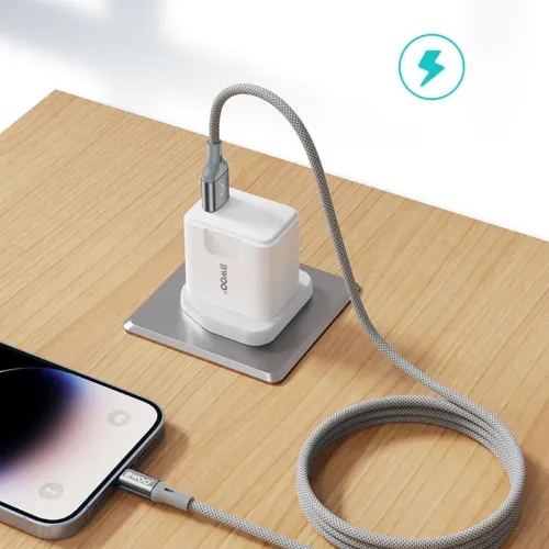 The BWOO BO-X311CL 27W Type-C to Lightning Cable is a powerful charging cable that prioritizes quick power supply and durability. The BWOO BO-X311CL 27W Lightning Cable is constructed with superior nylon braided material and a robust aluminum alloy casing, providing outstanding strength, flexibility, and resistance to wear and tangling. With 27W fast charging (9V/3A) and 480Mbps data transfer speed, it quickly charges and syncs your iPhone or iPad. This USB-C to Lightning connection provides robust, secure, and fast performance, making it suitable for current Apple users. The wire is 1 meter long and has an outer diameter of OD3.7×4.2mm. Its 65/0.08TC2C+16/0.08TC3C conductor structure ensures stable conductivity. The BWOO BO-X311CL also has an auto-coiling, tangle-free design, making it simple to store and transport anywhere—at home, at the office, or on the road. The BWOO BO-X311CL 27W Type-C to Lightning Cable is an excellent alternative for charging and data transmission if you want a long-lasting, quick, and portable charging cable.