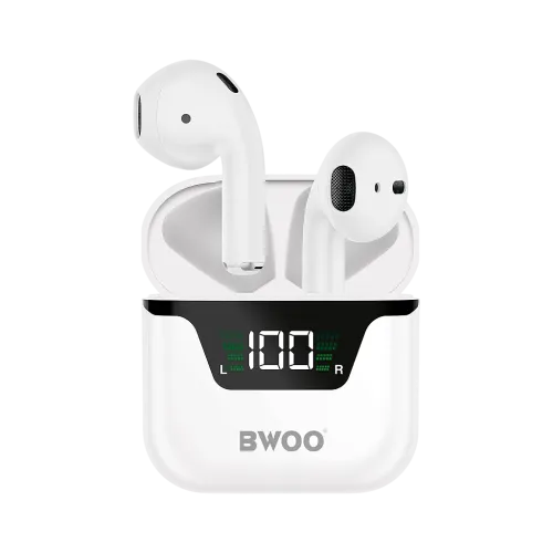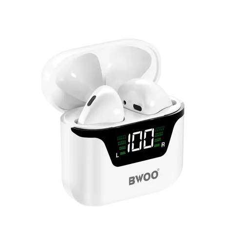 The BWOO BW50 Wireless Earbuds offer an exceptional combination of performance, comfort, and style, making them an excellent choice for both music enthusiasts and everyday users. These BWOO BW50 Earbuds include 14mm high-quality sound drivers, a polymer synthetic fiber diaphragm, and a strong NdFeB magnet to provide deep bass, crystal-clear mids, and highs for an immersive listening experience. The BWOO BW50 TWS, which uses Bluetooth 5.1 technology, provides a reliable, quick, and smooth connection within a 10-meter range while also supporting advanced BT protocols such as A2DP, AVRCP, HSP, and HFP. The BWOO BW50 Bluetooth Earbuds have intelligent noise reduction, which uses an innovative chip and correction algorithm to automatically detect and eliminate surrounding noise, resulting in crisper calls and music. You can effortlessly swap between single and dual earphones, providing versatility for various situations—use one earbud for hands-free calls and both for full stereo sound. The semi-in-ear ergonomic design provides comfort during extended listening sessions, and the digital display charging case with a 300mAh battery increases runtime to 30 hours. Each earbud has a 30mAh battery that provides up to 4 hours of music or 3 hours of call time, and it recharges completely in only 2 hours using a Type-C adapter. The BWOO BW50 Wireless Earbuds weigh only 32g and are tiny, lightweight, and attractive with a sleek white finish, making them the ideal TWS companion for everyday use, workouts, travel, and entertainment.