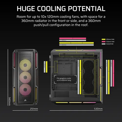 | Pre- Installed Fans | 3x LX120 RGB fans and iCUE LINK System Hub included | |