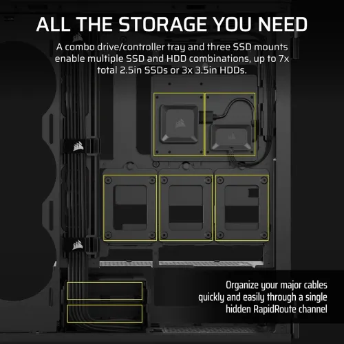 | Others | Sleek, uniquely contoured steel chassis Integrated Aurora RGB Light Strips for smoothly diffused lighting Compatible with reverse connector motherboards Removable mesh front and roof high airflow panels RapidRoute Cable Management System |