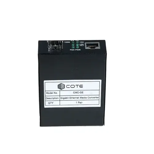 The COTE CMC-GE Gigabit Media Converter is a reliable networking device that enables smooth data transmission and efficient Ethernet connection expansion. This COTE CMC-GE Media Converter features a 10/100/1000Mbps port with full and half duplex auto-negotiation, guaranteeing optimal compatibility and performance in a variety of network scenarios. It automatically detects MDI/MDI-X cross lines, eliminating the need for crossover wires and simplifying configuration. The COTE CMC-GE guarantees smooth and steady data transfer even during peak network traffic thanks to full-duplex back-pressure flow management. Its converter mode with auto-change-forward (switch) feature automatically selects the best forwarding mode for optimal performance. With a UTP RJ-45 connection interface, the COTE CMC-GE Gigabit Media Converter provides dependable and adaptable access for both residential and corporate networks. Whether you want quick data transmission, simple installation, or trustworthy performance, the COTE CMC-GE Media Converter is the best option for establishing stable and high-speed Gigabit Ethernet connections.