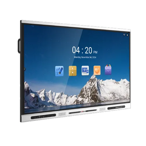 | Others | Touch Technology Type: Infrared touch technology Attachment Method: Zero Air Gap Response Time: ≤10 ms Touch Points: Android: 32, Windows: 40 Touch Accuracy: ± 1 mm (over 90% Area) Valid Touch: 2 mm Touch Height: <2.5 mm Writing Mode: Finger + Pen (attaches magnetically) Communication Mode: USB Anti-light Interference: Anti-dazzle tempered glass Surface Hardness: 8H |