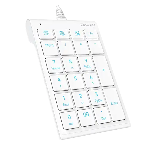 The DAREU Mini LK22 Numeric Keypad features a V scissor-rubber dome mechanism for comfortable and responsive typing. It has 22 buttons and works with both Windows and MacOS operating systems. It can register up to six simultaneous key presses thanks to its 6-key rollover capability. The DAREU Mini LK22 Numeric Keypad also includes useful hotkey functions such as copy, cut, paste, and the double-zero (00) key, which make it simple to navigate and input data in a variety of digital scenarios. DAREU Mini LK22 Numeric Keypad has a lighter touch and smoother key presses thanks to its 65gf operating force and 1.5mm press travel. This compact and lightweight numeric keypad, weighing only 65g, is designed to save space on your desk and is highly portable for on-the-go use.