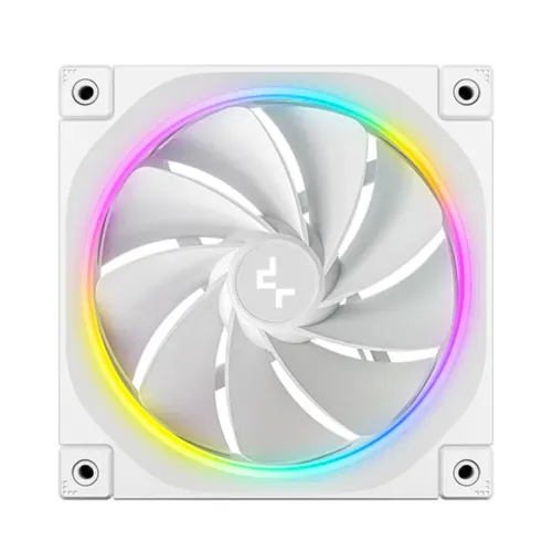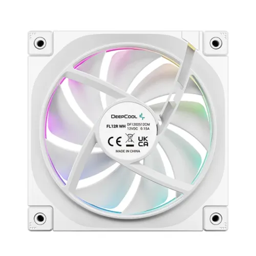 The DeepCool FL12R WH 120mm Case Fan is a premium cooling solution designed for PC enthusiasts who demand both performance and style. The DeepCool FL12R WH Casing Fan operates at a speed of 500 to 2150 RPM ±10%, delivering an impressive airflow of 55 CFM and air pressure of 2.59 mmAq, all while keeping noise levels low at ≤33.9 dB(A). Equipped with a long-life Fluid Dynamic Bearing, this fan ensures quiet and reliable operation for extended periods. The DeepCool FL12R WH Casing Cooler features 36 ARGB Gen2 LEDs in a luminous halo ring, creating vibrant lighting effects that can be synchronized with compatible motherboards. Its reverse fan blades allow uninterrupted RGB aesthetics on both intake and exhaust, eliminating the traditional cross pattern. Built with enhanced PBT frames and polycarbonate blades, the fan is durable, lightweight (181g), and reduces vibrations with full-coverage rubber pads at each corner. Connectivity is simple and secure through a 4-pin PWM fan connector and a 3-pin +5V-D-G ARGB LED connector. With a rated voltage of 12V DC for the fan and 5V DC for the LEDs, and low power consumption (1.8 W for the fan and 2.75 W for LEDs), the DeepCool FL12R WH ARGB Case Fan combines superior cooling performance, minimal noise, and eye-catching ARGB lighting, making it the perfect choice for high-performance PC builds.