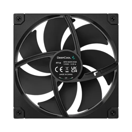 The DeepCool FT14 140mm Case Fan is engineered to deliver superior cooling performance for gaming rigs, professional workstations, and high-airflow desktop builds. This advanced DeepCool FT14 Casing Fan features a dynamic PWM speed range of 500±200 RPM to 1650 RPM±10%, allowing users to fine-tune airflow based on system temperature and workload demands. With a powerful 78.83 CFM airflow and an impressive 3.6 mmAq static pressure rating, the DeepCool FT14 140mm Casing Cooler excels in both open-air case ventilation and restricted radiator or heatsink environments, ensuring optimal thermal efficiency. Despite its strong cooling performance, it maintains whisper-quiet operation at ≤25.1 dB(A), making it perfect for silent PC enthusiasts. The Hydro/Fluid Dynamic Bearing enhances longevity and stability, while the elegant WHITE LED illumination adds aesthetic flair to any modern build. Constructed with a sleek black design and standard 140×140×25 mm dimensions, this DeepCool FT14 Case Fan supports a versatile 4-pin PWM connector and operates on 12V DC with a maximum 5.4W power consumption for energy-efficient performance. With reliability, style, and performance combined, the DeepCool FT14 is an excellent upgrade choice for gamers and PC builders seeking enhanced airflow and long-term durability.