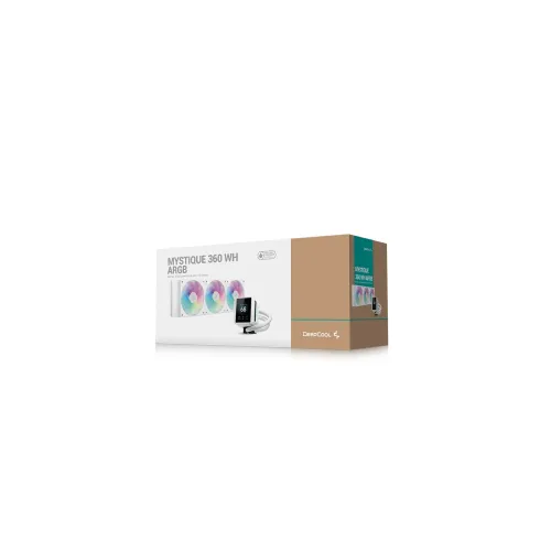 The DeepCool MYSTIQUE 360 WH ARGB 360mm Liquid CPU Cooler is a premium all-in-one cooling solution that combines high-performance thermal management with stunning aesthetics, making it ideal for gamers, PC enthusiasts, and content creators seeking both power and personalization. Crafted with precision engineering, the DeepCool MYSTIQUE 360 WH features a sleek white design that complements modern PC builds, especially those with a clean or minimalist aesthetic. At its core is a next-generation 5th Gen pump that delivers superior cooling efficiency, ensuring optimal CPU temperatures even under intense workloads or overclocking scenarios. The standout feature is its vivid 2.8-inch TFT LCD screen, boasting a crisp 640x480 resolution and support for 16.7 million colors. This customizable display allows users to showcase real-time system stats, personalized images, or animated GIFs, adding a dynamic visual element to any setup. Thanks to its built-in gyroscopic sensor, the screen automatically adjusts orientation for perfect alignment regardless of cooler positioning. The DeepCool MYSTIQUE 360 WH is equipped with three 120mm ARGB fans that operate between 600 to 2400 RPM, delivering a powerful airflow of up to 72.4 CFM while maintaining low noise levels at ≤38.71 dB(A). These fans utilize Fluid Dynamic Bearings for enhanced durability and quieter operation. The cooler supports a wide range of Intel and AMD (AM5, AM4) sockets, ensuring broad compatibility across current and next-gen platforms. The 360mm radiator maximizes surface area for heat dissipation, making it an excellent choice for high-performance CPUs.With its ARGB lighting synchronization, users can customize lighting effects via motherboard software, creating a cohesive and immersive RGB experience. Whether you're building a high-end gaming rig or a workstation that demands both performance and flair, the DeepCool MYSTIQUE 360 WH ARGB delivers on all fronts cooling power, visual customization, and whisper-quiet operation.