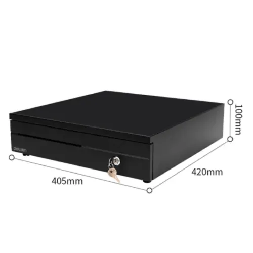 The Deli DL-405 Cash Drawer is a dependable and professional cash management system developed for retail stores, restaurants, supermarkets, and POS-based enterprises that demand secure and structured cash handling. Deli DL-405 Cash Drawer is a sturdy and practical design with compact dimensions of 420 x 405 x 100 mm, allowing it to fit conveniently under counters while facilitating daily transactions effortlessly. A retractable coin tray, six bill dividers, and a dedicated check deposit hole make the Deli Cash Drawer more user-friendly by keeping cash, notes, and documents organized. The extra-wide cheque hole enables for the speedy insertion of checks, receipts, and vouchers without opening the drawer, increasing workflow efficiency. The Deli DL-405 Cash Drawer features a secure three-position lock design that allows for manual opening, automatic opening via POS interface, and full lock mode for maximum control and safety. The Deli Cash Drawer is connected by an RJ 11 network connector, making it compatible with most POS systems for automated opening during transactions. The inside architecture allows for variable storage with 5 to 6 bill compartments and 4 to 5 coin slots, making it easy to accommodate diverse cash requirements. With a robust weight of 4.96 kg, the Deli DL-405 Cash Drawer provides secure positioning and consistent performance throughout peak working hours. Deli Cash Drawer design prioritizes durability, convenience of use, and secure cash handling for frontline employees. Deli DL-405 Cash Drawer is ideal for high-traffic areas where speed, organization, and dependability are critical.