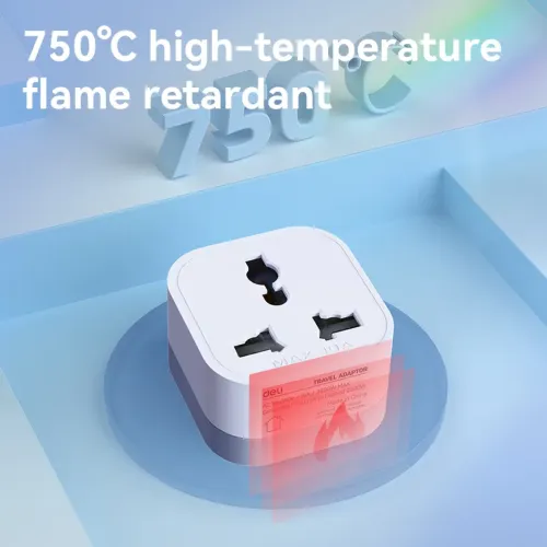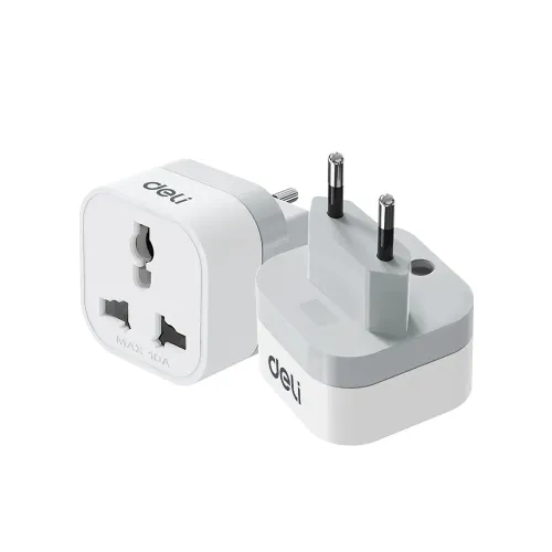 The Deli ET738EU 2500W Adapter features a universal standard socket that supports a wide range of plug types for global compatibility. Deli Travel Adapter comes with a European standard plug that ensures stable connection with compatible outlets in many countries. The Adapter delivers up to 2500W maximum power, making it suitable for various electronic devices and appliances. Deli Travel Adapter supports an output voltage of 250V and output current of 10A for consistent and dependable performance. Deli Adapter uses integrated copper components that improve conductivity and ensure efficient power transmission during usage. Deli ET738EU 2500W Travel Adapter is built with durable PP material that enhances strength and long term reliability. Deli 2500W Adapter includes 750 degree Celsius fireproof construction that increases safety during high power usage conditions. Deli Travel Adapter features a single socket design that simplifies usage and maintains compact portability for travel convenience. Deli ET738EU Adapter falls under Category II conventional design, ensuring standard safety and performance for everyday electrical needs. Deli Adapter ensures stable operation for gadgets such as laptops, smartphones, and small appliances during travel or office use.