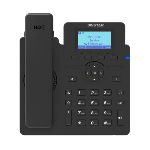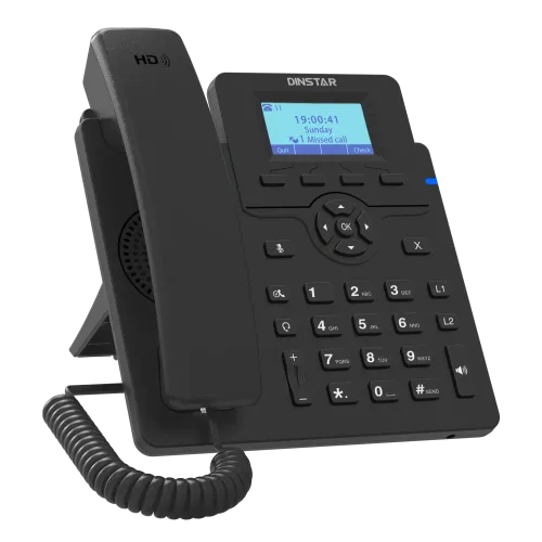 The DINSTAR C60U Entry Level IP Phone with Adapter is a reliable VoIP solution designed for small businesses, startups, and remote workers seeking high-quality communication without the complexity. Designed to deliver crystal-clear communication and seamless connectivity, this model supports 2 SIP accounts, allowing users to manage multiple lines efficiently. It features 2 line keys with HD audio, ensuring superior voice clarity and a professional calling experience. The 5-way audio conferencing capability makes it ideal for collaborative discussions, enabling multiple participants to join a single call without compromising sound quality. Equipped with dual-port 10/100Mbps Ethernet, the C60U ensures stable network performance and easy integration into existing setups. Its inclusion of a USB power adapter eliminates the need for Power over Ethernet (POE), making it especially suitable for offices without POE infrastructure. With intuitive navigation, robust SIP protocol support, and compatibility with leading IP PBX systems, the DINSTAR C60U offers a reliable, feature-rich communication tool that balances performance and affordability.