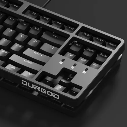 The Durgod Cavalry 87 RGB Mechanical Keyboard is an 87-key tenkeyless board that reduces desk space while maintaining full functionality, including multimedia function keys and full N-key rollover for immaculate input accuracy. The Durgod Cavalry 87 Mechanical Keyboard has a wired USB-C connection and a rapid 1000Hz polling rate, ensuring quick response during strenuous gaming sessions and typing chores. Durgod Cavalry 87 Keyboard is designed to work flawlessly with Windows, macOS, Linux, Android, and iOS operating systems. The Durgod Mechanical Keyboard's hot-swappable PCB allows users to readily change mechanical switches without soldering and completely modify the typing feel. Durgod Keyboard has brilliant RGB illumination with several lighting modes, creating a beautiful, starry-sky appearance across the keys. Durable double-shot PBT keycaps ensure long-lasting legends, while the finely tuned painting technique and frosted technology give the dark gray body a sophisticated metallic touch. The removable top cover simplifies cleaning by providing quick access to dust and debris between keys. Internally, a stabilized steel plate improves typing consistency. The keyboard has numerous angle adjustments of 7° and 10° for ergonomic comfort during long sessions. The Durgod Cavalry 87 Mechanical Keyboard's plastic frame and bottom case strike a mix between strength and portability. Gamers benefit from rapid multi-key presses with no conflict, which allows for flawless combo execution and continuous skill activation in milliseconds. The Durgod Cavalry 87 Mechanical Keyboard provides an exceptional gaming, work, and everyday experience by combining superior build quality, versatile DIY customization, and responsive performance.
