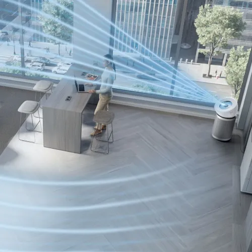 The Dyson BP06 Air Purifier delivers a high airflow rate of up to 90 liters per second for fast, even purification across large rooms. In its quiet setting, noise levels are kept low (around 43 dBA) so your environment stays peaceful while the air is cleaned.
