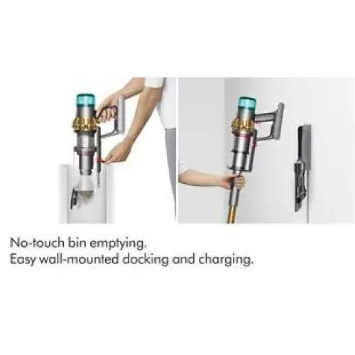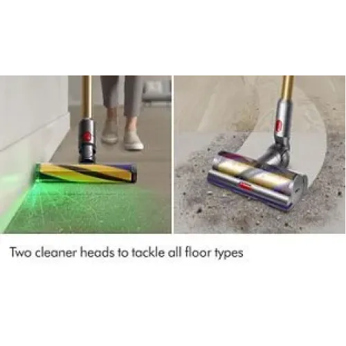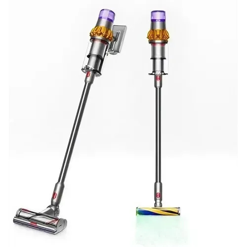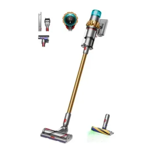 The Dyson V15 Detect vacuum is a powerhouse of intelligent cleaning, engineered for deep, hygienic performance across all floor types. Delivering an impressive 240 Air Watts of fade-free suction, this premium Vacuum Cleaner is powered by a Dyson Hyperdymium digital motor that spins at up to 125,000rpm, ensuring maximum efficiency. With up to 60 minutes of run time supported by a swappable seven-cell lithium-ion battery, it offers uninterrupted cleaning for larger spaces. The Digital Motorbar cleaner head automatically adapts suction and detangles pet hair, while the Fluffy Optic cleaner head illuminates hidden dust on hard floors for a visibly cleaner finish. Dyson’s advanced Root Cyclone technology with 14 cyclones ensures no loss of suction, and the dust detect sensor analyzes particles 15,000 times per second to optimize power and battery life. The whole-machine HEPA filtration captures 99.99% of microscopic allergens down to 0.1 microns‡, making it ideal for allergy sufferers. An intuitive LCD screen provides real-time feedback on particle removal, and the hygienic point-and-shoot bin emptying system keeps your hands clean. With a 0.2-gallon bin capacity, 4.5-hour charge time, and the latest features like hair de-tangling and intelligent dust detection, the Dyson V15 Detect sets a new standard for cordless vacuum performance.