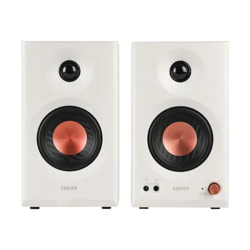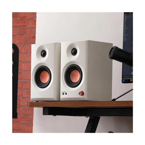The Edifier MR3 features an MDF cabinet that reduces resonance and distortion, ensuring clean audio delivery. Fine-tuned drivers enhance mid-low frequencies, while silk dome tweeters provide smooth highs. With acoustic room compensation settings, the Edifier MR3 adapts to different environments effortlessly.