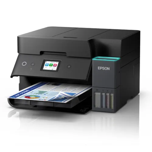 The Epson EcoTank L6390 A4 Wi-Fi All-in-One Ink Tank Printer with ADF is a high-performance multifunction printer designed for professional and home office needs. EcoTank L6390 Printer offering print, scan, copy, and fax capabilities with advanced efficiency. Powered by PrecisionCore Printhead technology, this ink tank printer delivers sharp and vibrant output with a resolution of 4800 x 1200 DPI, ensuring every document and photo looks professional. The Epson EcoTank L6390 Ink Tank Printer achieves fast print speeds of 18 pages per minute in monochrome and 9 pages per minute in color under ISO standards, while reaching up to 35ppm in monochrome and 23ppm in color on plain paper. First print out time is just 8.5 seconds for black and 13.5 seconds for color, making it ideal for busy workflows. Automatic duplex printing saves paper and time, while the 250-sheet input tray and 30-sheet output capacity support uninterrupted productivity. Copying is efficient with speeds up to 12.0 ipm in black and 5.0 ipm in color using the ADF, with duplex copy speeds of 6.0 ipm and 3.0 ipm respectively, supported by 600 x 600dpi resolution. Scanning is handled by a CIS sensor with 1200 x 2400dpi resolution, offering single and double-sided scanning via the ADF, with speeds of 5 ipm for single-sided and 3.5 ipm for duplex scans. The Epson EcoTank L6390 A4 Wi-Fi All-in-One Printer also includes fax functionality with transmission speeds up to 33.6 kbps and memory for 100 pages. Connectivity options include USB, LAN, and Wi-Fi, along with mobile printing support via Apple AirPrint, Google Cloud Print, and Mopria Print Service, plus web printing through Epson iPrint, Epson Email Print, and Remote Print Driver. Consumables include high-yield Epson ink bottles, with black delivering up to 8,500 pages and cyan, magenta, and yellow each offering 6,500 pages, ensuring cost-effective printing. Compact dimensions of 375 x 347 x 240 mm and a weight of 9.55 kg make it suitable for any workspace, while the sleek black body adds a professional touch. The Epson EcoTank L6390 A4 Wi-Fi All-in-One Ink Tank Printer with ADF is the perfect choice for users seeking speed, reliability, eco-friendly printing, and versatile functionality in one powerful device.