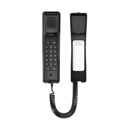 The Fanvil H2U 2-SIP Hotel IP Phone is a luxurious and fashionable communication solution for hotels, offices, hospitals, and other commercial spaces. This Fanvil H2U IP Phone has two SIP lines and 19 functional keys, including ten speed dial keys, one programmable DSS key, and three volume control buttons, providing versatility and convenience of usage. The Fanvil H2U 2-SIP IP Phone, which features an HD speaker and 3-way local conference functionality, provides crystal-clear audio and a premium calling experience. It has both RJ45 Ethernet and RJ11 ports, as well as integrated PoE and AC adapter power choices for more connection and convenience. This device is designed for versatility, since it can be installed on the desktop or on the wall, making it suitable for a variety of locations. The Fanvil H2U Hotel IP Phone is both useful and elegant, thanks to its sleek black appearance, eco-friendly construction, and ease of installation. It also works with major communication platforms like Asterisk, Broadsoft, 3CX, Metaswitch, Elastix, and Avaya, ensuring a smooth integration in professional environments. The Fanvil H2U 2-SIP Hotel IP Phone, with its modern style, strong functions, and low cost, stands out as a dependable, high-quality communication device for any business or hospitality sector.