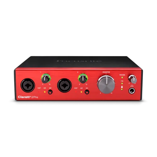The Focusrite Clarett+ 2Pre is a high-end 10-in/4-out USB-C audio interface intended for musicians, podcasters, and producers looking for professional-grade performance. It has two high-headroom mic/line/instrument preamps with 57dB gain range and a switchable Air mode for improved clarity and presence. The Focusrite Type-C Audio Interface connects via USB-C or USB-A and is compatible with both Mac and Windows systems. It can be powered by the provided AC adapter or USB bus. With enhanced 24-bit/192 kHz AD/DA conversion, it produces studio-quality sound across all input and output channels. The Focusrite Clarett+ 2Pre Audio Interface has four balanced line outputs, a strong headphone output, and an ADAT optical input for adding up to eight more channels. MIDI I/O is also available to connect external synths or controllers. Its microphone inputs have a dynamic range of 118dB, a low THD+N of -110dB, and an EIN noise figure of -129dBu, resulting in clean and clear recordings. The Focusrite Clarett+ 2Pre Type-C Audio Interface includes line inputs with up to 26dBu peak input volume and comparable high-fidelity characteristics, while instrument inputs have a dynamic range of 116dB and -96.5dB THD+N. The line and monitor outputs feature a dynamic range of 124dB with -106dB THD+N, while the headphone output can accommodate up to 16dBu with a dynamic range of 118dB. Visual bicolor gain halos help with accurate input level monitoring. The Focusrite Clarett+ 2Pre 10x4 Type-C Audio Interface also supports low-latency tracking and comes preloaded with Ableton Live Lite, Pro Tools Artist, and the Hitmaker Expansion plugin bundle, giving you creative tools for music composition right away. The Focusrite Clarett+ 2Pre Type-C Audio Interface is ideal for recording vocals, instruments, podcasts, and full mixes, offering a seamless workflow for both home studios and mobile recording setups.
