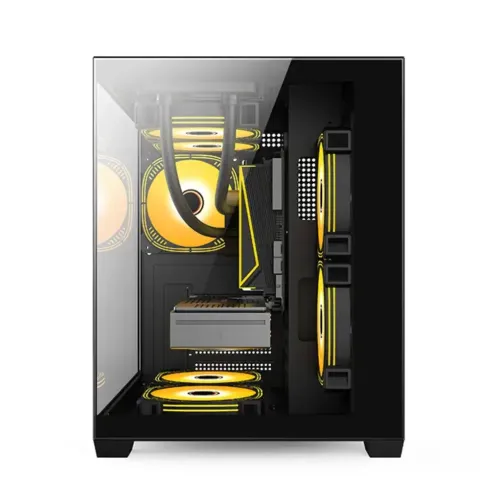 The Golden Field S01 M-ATX Gaming Casing is designed for customers looking for dependable performance, clean aesthetics, and effective cooling in a compact mid-tower Case. The Golden Field S01 Gaming Casing supports M-ATX and ITX motherboards, making it ideal for modern gaming and productivity systems. The Golden Field S01 Casing has 5x PCI-E expansion slots, allowing for flexible installation of graphics cards, sound cards, and other add-on components. The casing's front panel features a practical I/O arrangement, including 1x USB 3.0 connector, 2x USB 2.0 ports, and HD audio support for easy daily connectivity. The Golden Field M-ATX Casing, finished in black, matches both gaming and professional environments. It supports graphics cards up to 330mm in length and CPU coolers up to 160mm in height, allowing customers to choose powerful components. The top panel accepts optional 240mm water cooling, offering an upgrade route for enhanced thermal management. A tempered glass left side panel provides excellent visibility of internal components and adds a luxury touch. Cooling is a main highlight of the Golden Field ARGB Gaming Casing, which includes 3x pre-installed 120mm ARGB fans and can be expanded to 5x 120mm fans for balanced airflow. The superb airflow system helps to keep temperatures steady throughout extended gaming sessions. Storage options include 1x HDD and 3x SSDs, allowing for flexible data management. The Golden Field S01 M-ATX Gaming Casing, measuring 335x275x355mm, combines smart design, excellent compatibility, and solid performance in a well-balanced mid-tower chassis. It is great for budget-conscious gamers and system builders who want style, ventilation, ARGB lighting, and proven Golden Field build quality for everyday computing, entertainment, and smooth future upgrades without sacrificing space efficiency or component compatibility today.