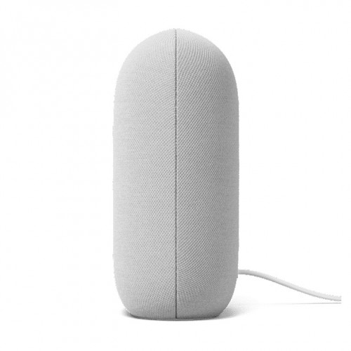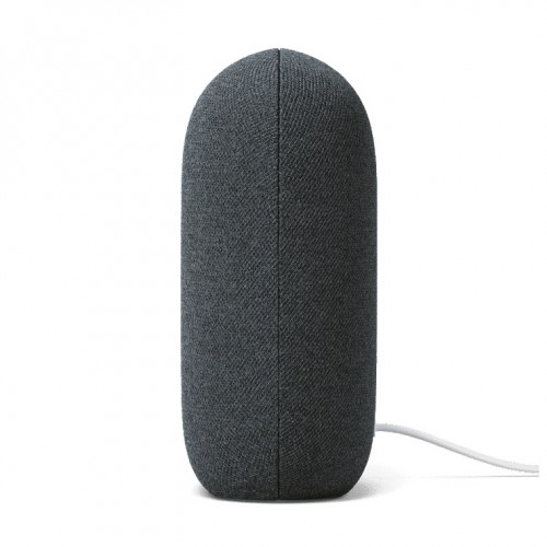 The Google Nest Audio has a slim design that lets it blend into your home. This smart device is environmentally friendly as the enclosure is made from 70% recycled plastic. It has been designed to protect your privacy. You can delete your history by saying "Hey Google, delete what I just said." To physically turn off the microphones, slide the mic switch on the back to show orange. The Google Nest Audio comes with no warranty.