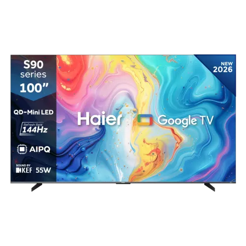 The Haier H100S90FUX 100" 4K Google TV features QD-Mini LED technology combined with QLED color enhancement for impressive brightness and contrast. Its 4K UHD resolution of 3840 × 2160 produces extremely detailed images with sharp clarity across movies, sports, and gaming content. A high contrast ratio of 5000:1 improves shadow detail and highlights bright scenes naturally. With brightness reaching 1000 cd/m², the Haier H100S90FUX 100" 4K QD-Mini LED Google TV performs well in both dim and well-lit rooms.