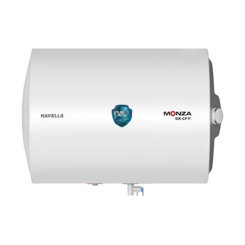 The Havells Monza DX 50 Litre Geyser, made with Feroglas Technology, has an ultra-thick super cold rolled steel tank coated with sophisticated Feroglas dry powder coating, which ensures outstanding resistance to corrosion and extreme hard water conditions. The Incoloy 800 glass covered heating element provides quick and efficient heating while minimizing scaling, extending the Havells Monza DX Geyser's lifespan even when used frequently. With a substantial 50-litre rated capacity and a 2000 W power input, this Havells Geyser produces steady hot water output, which is further boosted by Whirl Flow Technology, which avoids direct mixing of hot and cold water and provides up to 20% more usable hot water. High-density, CFC-free PUF insulation lowers radiant heat loss, increases energy efficiency, and allows hot water to be stored for longer periods of time. The Havells Monza DX 50 Litre Geyser is designed to withstand rigorous installations and supports a high operating pressure of 0.8 MPa, making it perfect for high-rise structures. The multifunctional safety valve prevents pressure from exceeding safe limits. A heavy-duty magnesium anode rod with a steel core protects the tank from rust and corrosion, while a high-precision thermostat with thermal cut-off prevents overheating and a fire-retardant power cord provide additional protection. The Havells Monza DX 50 Litre Geyser features an IPX4 water resistance rating, which protects electrical components from water splashes and ensures reliable operation in humid settings. A manual temperature control knob allows customers to conveniently regulate the water temperature while conserving electricity.